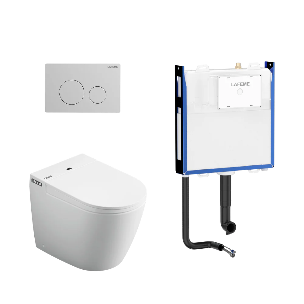 Lafeme Crawford Inwall Cistern Floor Pan Smart Toilet With Brushed Nickel Flush Plate